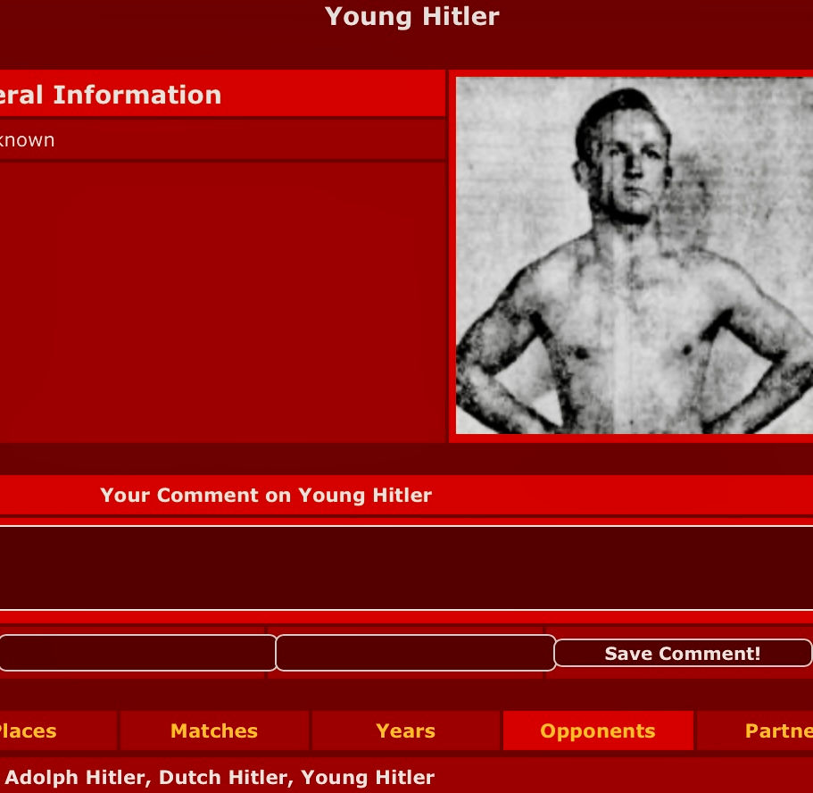 Hi Anglo. Although I saw this name years ago on a wrestling site, until your question, I had never been inclined to look him up. Picture courtesy of wrestledata, where if you are so inclined, you’ll find several Robin Hoods, Little Johns, Geronimo’s, etc. (How many Tarzans would there be)?